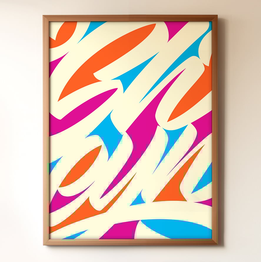 The abstracted brush-script lettering style is meant to reveal the humanity behind the brush strokes while the vibrant colors conveys positive energy.